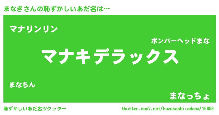 | ヒーロー風カッコイイあだ名 | 『仮面マナダー』『最強戦士マナキ』 |