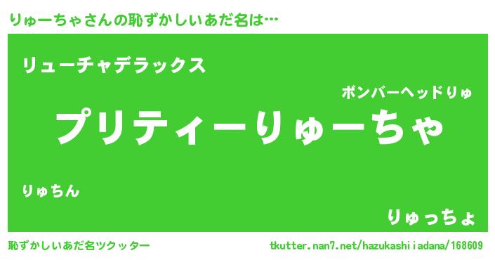 | 男性向けラノベタイトル風あだ名 | 『緋弾のリューチャ』『りゅーちゃの憂鬱』 |