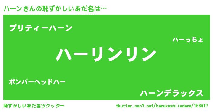 | ヘコむあだ名 | 『ハーっ子』『ハーもー』『レバニラ』 |