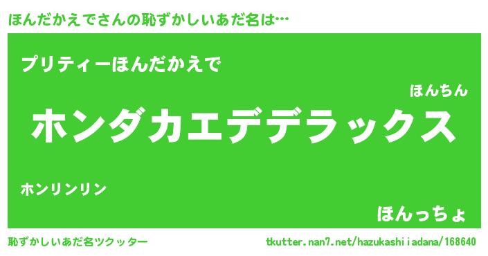 | 女子向けラノベタイトル風あだ名 | 『ほんだかえでなんてお断りですっ。』 |