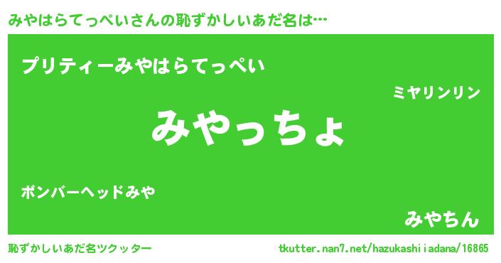 | ヘコむあだ名 | 『なまこ酢』『みやにー』『みや太郎』 |