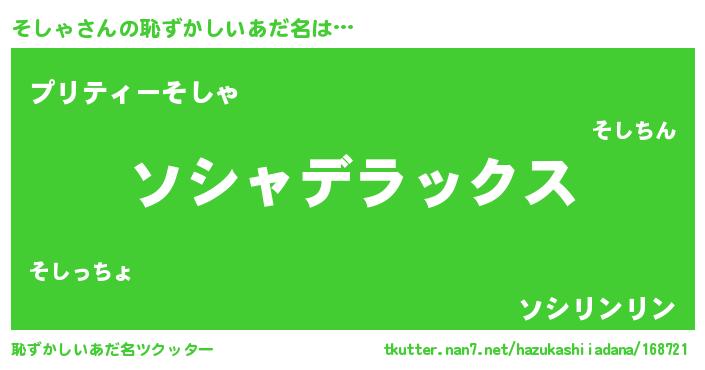 | ヒーロー風カッコイイあだ名 | 『超時空戦士ソシャ』『スーパーソシャ』 |