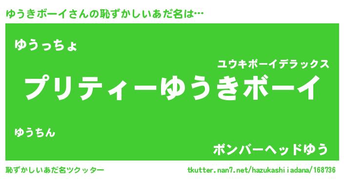 | 男性向けラノベタイトル風あだ名 | 『ゆうきボーイに滅ぼされるだけの簡単なお仕事です』 |