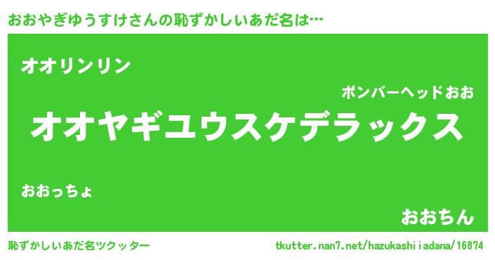 | 意味不明あだ名 | 『自称おおやぎゆうすけ』 |