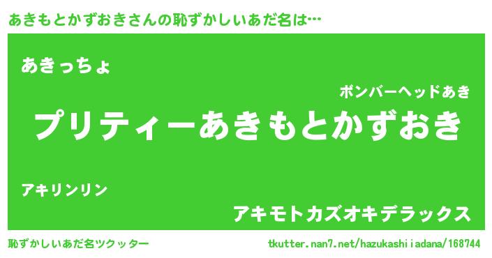 | 意味不明あだ名 | 『住所不定無職あきもとかずおき(2歳)』 |