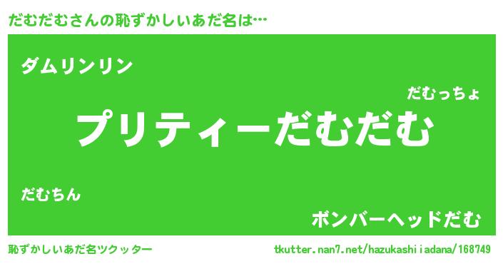 | 2回繰り返すあだ名 | 『だむだむ』『あんあん』『だだむむ』 |