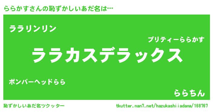 | ヘコむあだ名 | 『ららお』『ららかす(苦笑)』『牛乳』 |