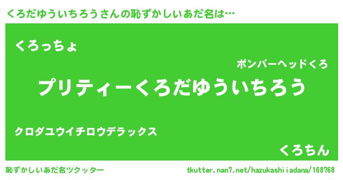 | 伝説のあだ名 | 『伝説のスナイパーくろだゆういちろう』 |
