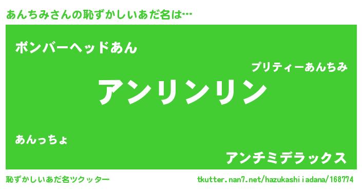 | 意味不明あだ名 | 『とにかく怪しいあんちみ』 |