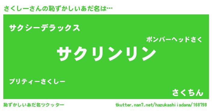 | ヒーロー風カッコイイあだ名 | 『暗黒騎士サク』『最強戦士サクシー』 |