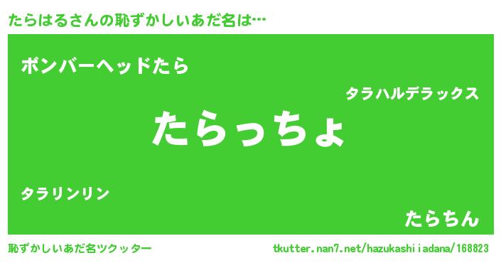 | 意味不明あだ名 | 『たらはるフォーエバー』『自称たらはる』 |