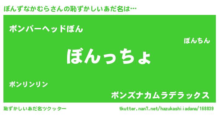 | 意味不明あだ名 | 『ぼんずなかむらフォーエバー』 |