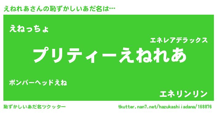 | 意味不明あだ名 | 『ペロリンえねれあ』『自称えねれあ』 |