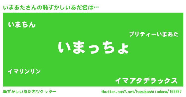 | 女子向けラノベタイトル風あだ名 | 『いまあたの雑貨屋さん』『闇のいまあた』 |