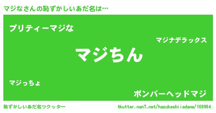 | 男性向けラノベタイトル風あだ名 | 『マジなという概念が存在しない退屈な世界 』 |