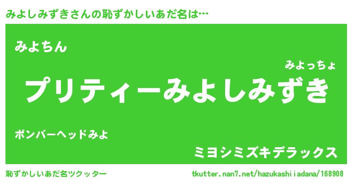 | ヘコむあだ名 | 『みよふぇ~』『みよしみずき(笑)』 |