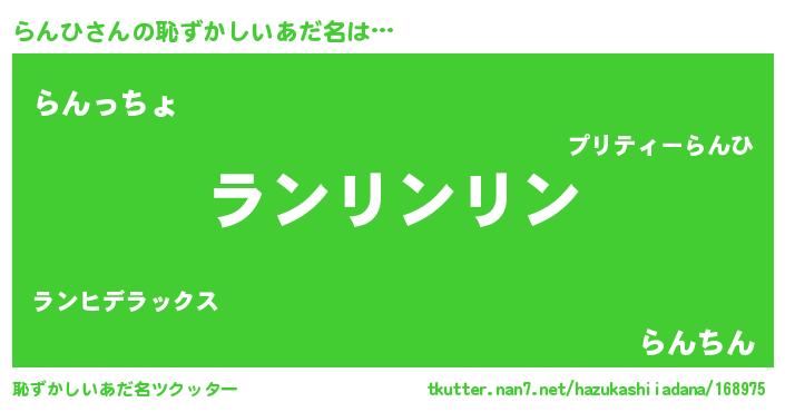 | ポケモン風あだ名 | 『ヒランヒ』『ランヒダネ』 |