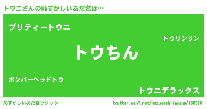 | ヘコむあだ名 | 『トウニ(笑)』『トウもー』 |