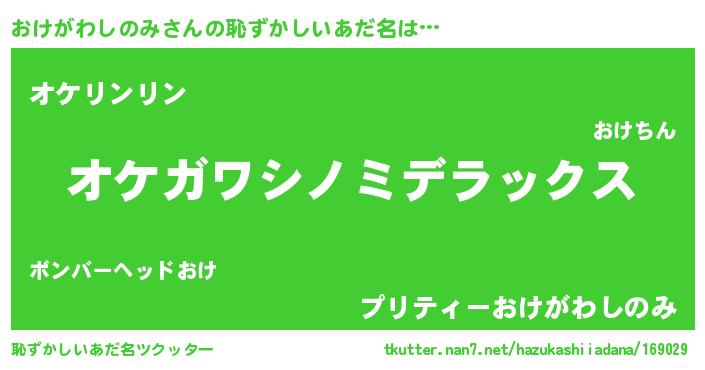 | 意味不明あだ名 | 『自称おけがわしのみ』 |