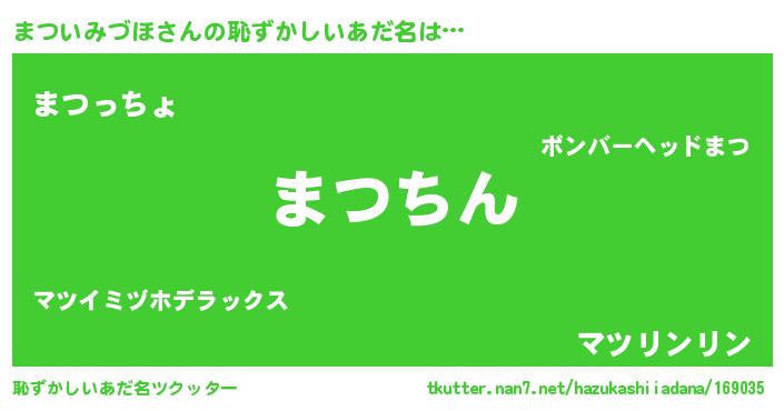 | 胡散臭い通販商品みたいなあだ名 | 『絶対に幸福をもたらす水素水…その名も「まついみづほ」』 |