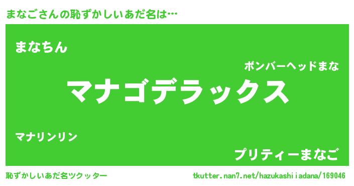 | ヒーロー風カッコイイあだ名 | 『最強戦士マナゴ』『ネオマナゴ』 |
