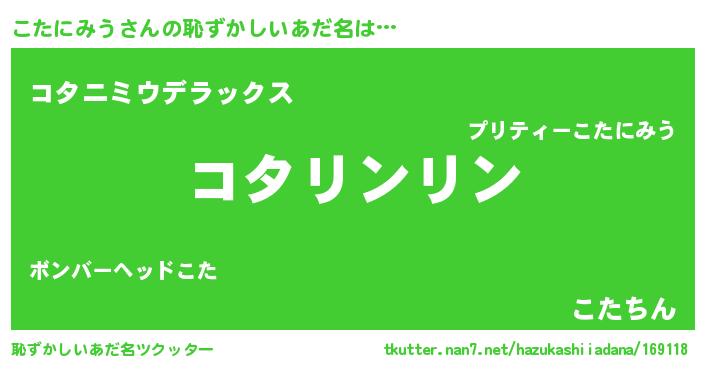 | 意味不明あだ名 | 『とにかく怪しいこたにみう』 |