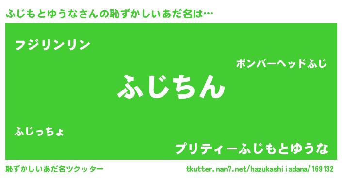 | ヘコむあだ名 | 『ふじもとゆうな(震え声)』『ふじぷりん』 |