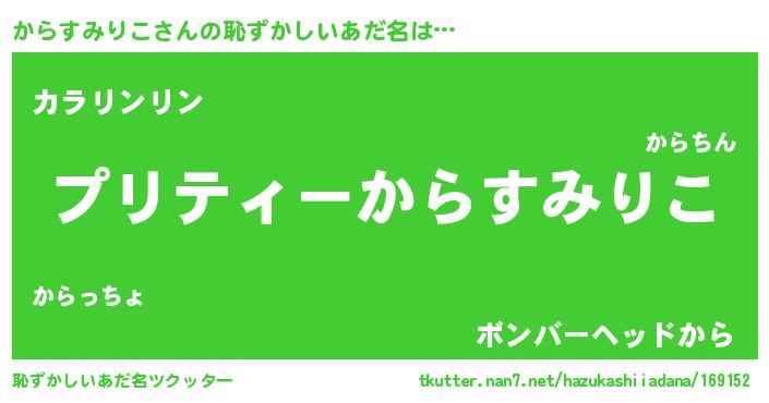 | ヒーロー風カッコイイあだ名 | 『スーパーカラスミリコ』『銀牙騎士カラ』 |