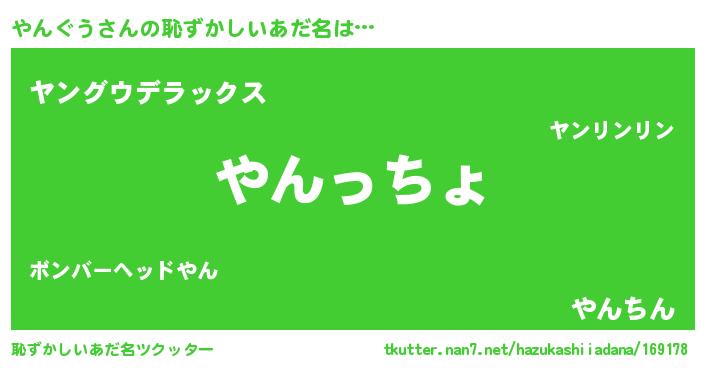 | 欧米人風あだ名 | 『やんぐうクリステル』 |