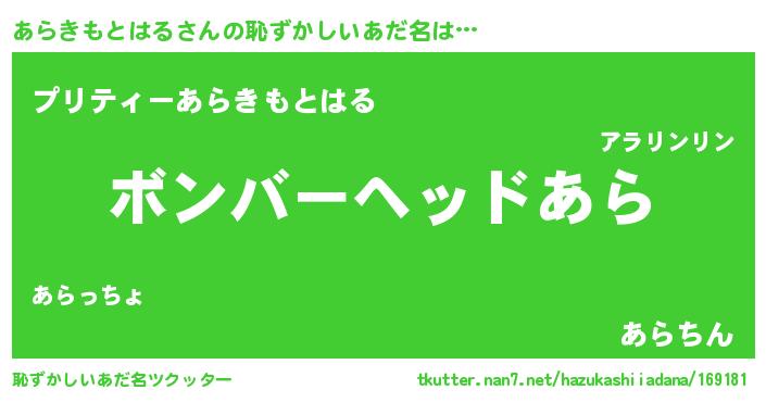 | 男性向けラノベタイトル風あだ名 | 『緋弾のアラキモトハル』 |