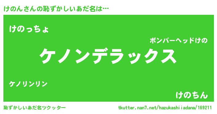 | 男性向けラノベタイトル風あだ名 | 『魔法科高校のけのん』『緋弾のケノン』 |