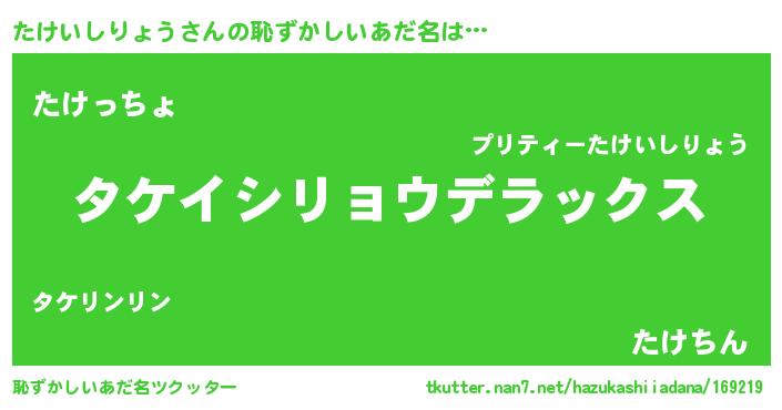| ヒーロー風カッコイイあだ名 | 『最強戦士タケイシリョウ』 |