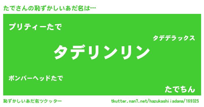 | ヘコむあだ名 | 『たでお』『たでにゅー』『たで(笑)』 |