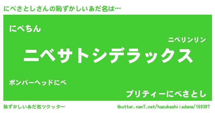 | ヘコむあだ名 | 『にべさとし(笑)』『にべもー』 |