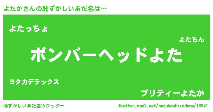 | 意味不明あだ名 | 『眠気覚ましガムよたか味』 |