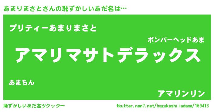 | 男性向けラノベタイトル風あだ名 | 『アマリマサトスレイヤー』 |