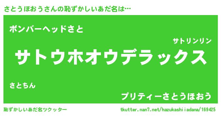 | 意味不明あだ名 | 『住所不定無職さとうほおう(85歳)』 |