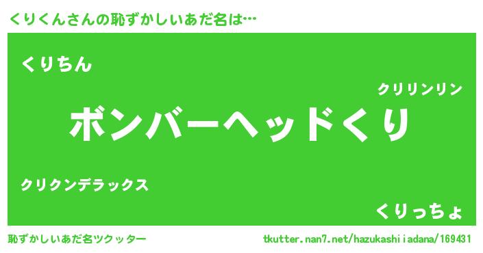 | ヘコむあだ名 | 『くりくん(震え声)』『つくし』 |