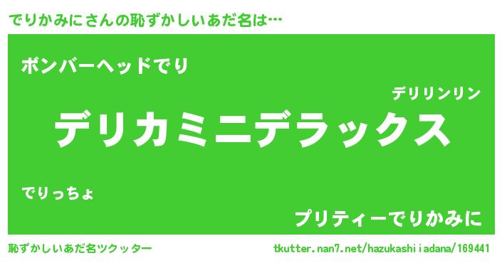 | 男性向けラノベタイトル風あだ名 | 『この素晴らしい世界にでりかみにを!』 |