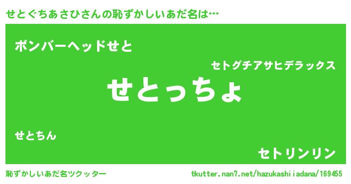 | 意味不明あだ名 | 『せとぐちあさひフォーエバー』 |