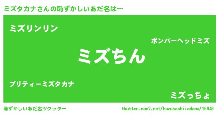 | 意味不明あだ名 | 『永久保存ミズタカナ』 |
