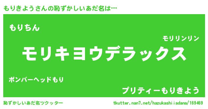 | 意味不明あだ名 | 『自称もりきよう』『永久保存もりきよう』 |
