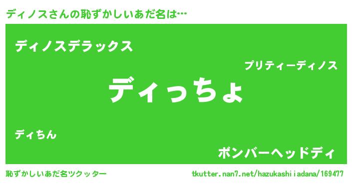 | 女子向けラノベタイトル風あだ名 | 『ディノスの雑貨屋さん』『闇のディノス』 |