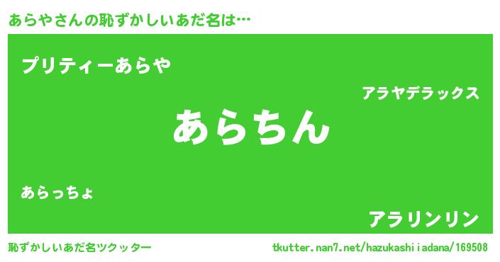 | 意味不明あだ名 | 『永久保存あらや』『ペロリンあらや』 |