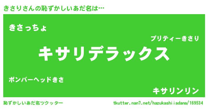 | ヒーロー風カッコイイあだ名 | 『サイバー戦士キサリ』『魔戒騎士キサ』 |