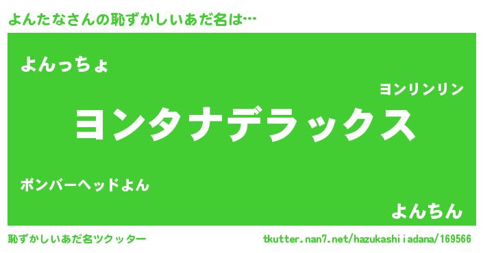 | 意味不明あだ名 | 『自称よんたな』『よんたなフォーエバー』 |