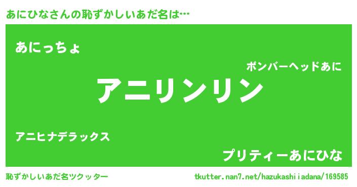 | 意味不明あだ名 | 『とにかく怪しいあにひな』 |