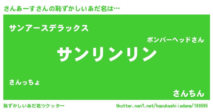 | ヒーロー風カッコイイあだ名 | 『天弓騎士サン』『最強戦士サンアース』 |