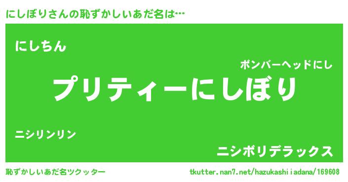 | 胡散臭い通販商品みたいなあだ名 | 『モテモテ間違いなし水晶球…その名も「にしぼり」』 |