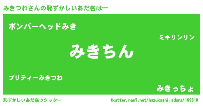 | 意味不明あだ名 | 『永久保存みきつわ』 |